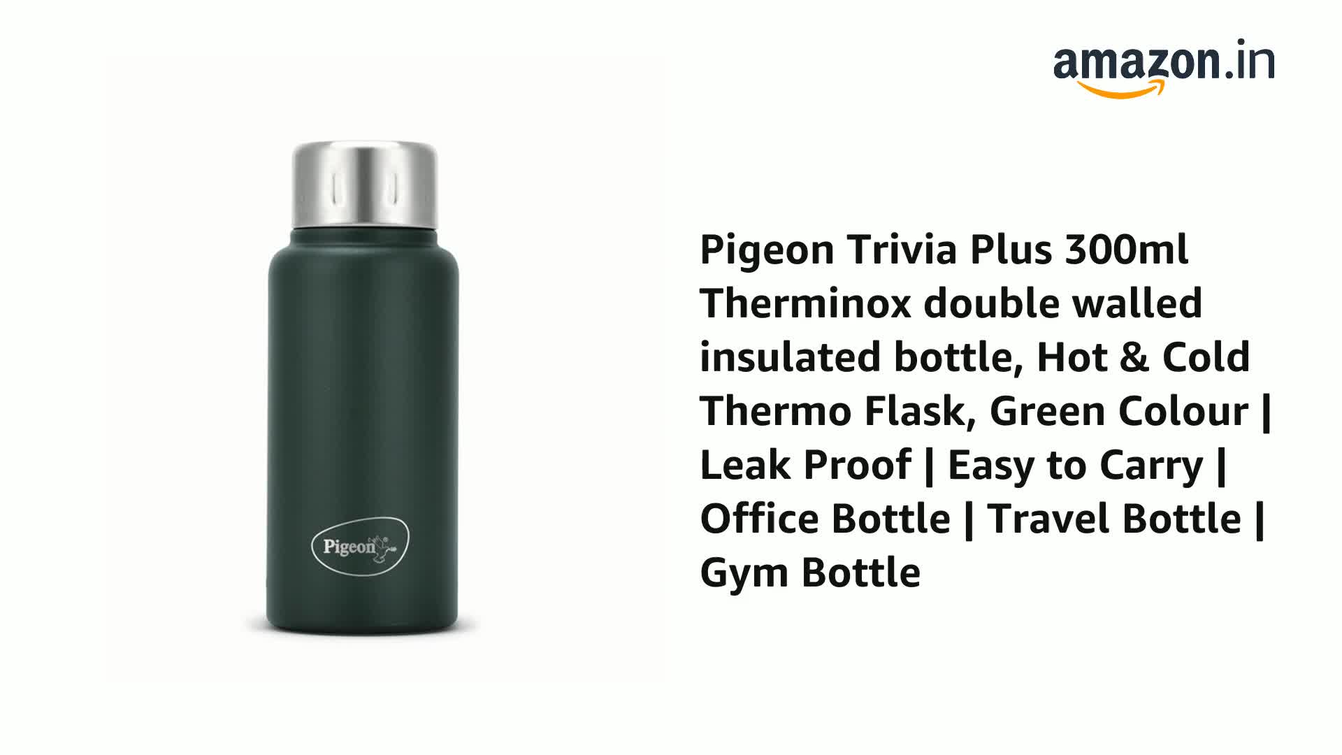 Pigeon Trivia Plus 300ml Therminox double walled insulated bottle, Hot & Cold Thermo Flask, Green Colour | Leak Proof | Easy to Carry | Office Bottle | Travel Bottle | Gym Bottle