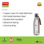Prestige thermopro stainless steel water bottle this stylish water bottle is made of 304 grade stainless steel allows you to carry clean & safe water wherever you go. It comes with double walled vacuum insulation and a copper layer that keeps your water hot or cold for hours so that you donât have to worry about re-heating and re-cooling again & again. With features like 304 grade stainless steel body and lid carrying strap etc the prestige thermopro water bottle is an indispensable accessory.