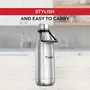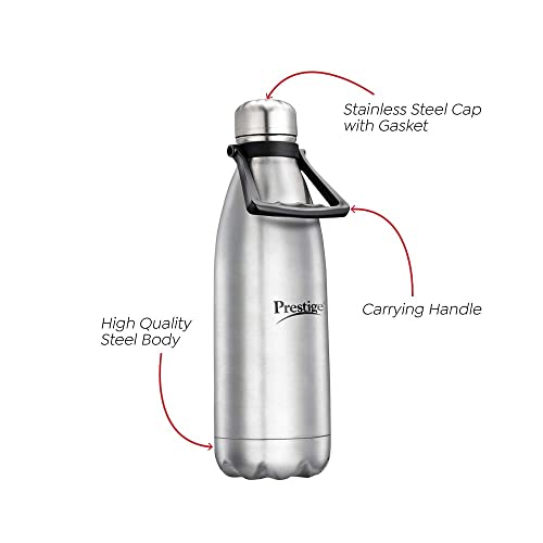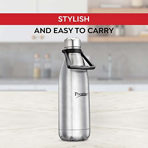 Prestige Thermopro Stainless Steel Water Bottle This stylish water bottle allows you to carry clean and safe water wherever you go. It comes with double walled vacuum insulation and a copper layer that keeps your water hot or cold for hours so that you don't have to worry about re-heating and re-cooling again and again With features like 304 grade stainless steel carrying handle etc the Prestige Thermopro Water Bottle is an indispensable accessory for your home or office.