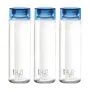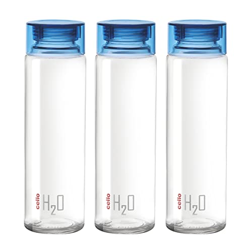 CELLO H2O Glass Fridge Water Bottle with Plastic Cap | Leak proof & break-proof | Wide mouth & Easy to Clean | Best Usage for Office/School/College | Set of 3, 920ml | Blue