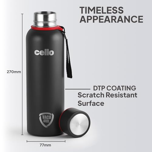 Cello presents the Duro Series of Tuff Steel insulated bottles that you can carry with you on treks hiking cycling to the gym school or office with ease. Designed with new and advanced DTP coating the colour of the bottles will not fade or scratch with use. Enjoy an active lifestyle while your bottle stays brand new even with everyday wear and tear. The Duro Tuff Steel Kent bottle is manufactured in food safe double wall heavy duty stainless steel. The vaccusteel technology ensures that the bottles retain temperature of beverages upto 24 hours so you can enjoy your hot or cold drink longer. The 304 grade stainless steel does not oxidize or leach chemicals hence keeping the beverage healthy at all times. Compact and designed for the get go this bottle comes with a sturdy wrist loop for better portability.