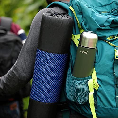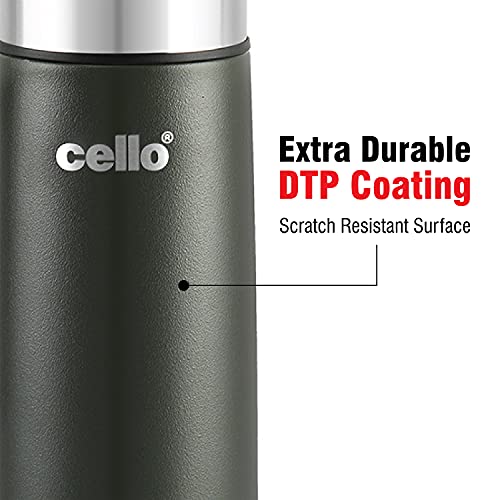 Cello Duro Flip Thermosteel Flask with Jacket | 500ml, Green | 24 Hours Hot and Cold | Flask for Tea Coffee | Rust & Leak Proof | Ideal for Office, Gym, Home, Kitchen, Hiking, Travel Bottle