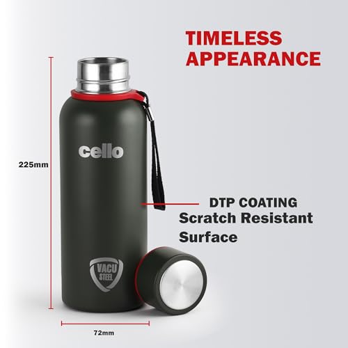 Cello presents the Duro Series of Tuff Steel insulated bottles that you can carry with you on treks hiking cycling to the gym school or office with ease. Designed with new and advanced DTP coating the colour of the bottles will not fade or scratch with use. Enjoy an active lifestyle while your bottle stays brand new even with everyday wear and tear. The Duro Tuff Steel Kent bottle is manufactured in food safe double wall heavy duty stainless steel. The vaccusteel technology ensures that the bottles retain temperature of beverages upto 24 hours so you can enjoy your hot or cold drink longer. The 304 grade stainless steel does not oxidize or leach chemicals hence keeping the beverage healthy at all times. Compact and designed for the get go this bottle comes with a sturdy wrist loop for better portability.