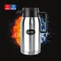 The cylindrical shaped stainless steel Vacuum Flask with chrome finish and high-grade thermos plastic for the handle. The flask comes with a convenient spout that helps in easy pouring of beverages. Product Features: Double walled dispenser stainless steel flask Unbreakable stainless steel liner and outer shell Keeps drinks hot or cold for hours Carry handle for easy transport Superior insulation performance-patented vacuum technology Wide mouth design for easy cleaning and added versatility