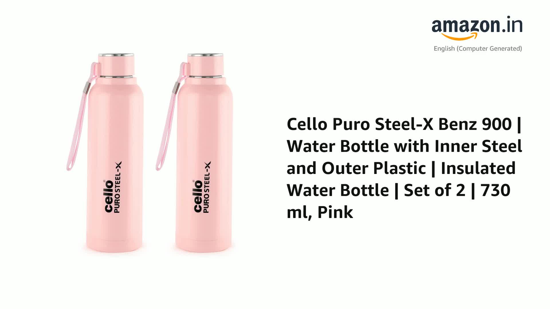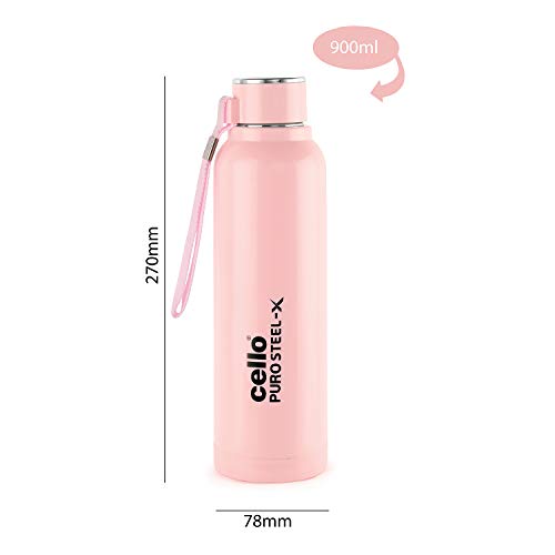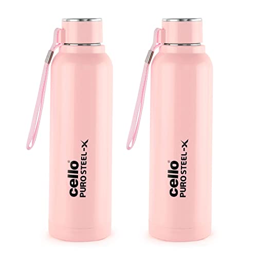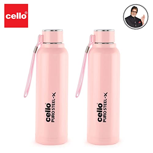 CELLO Puro Steel-X Benz 900 | Water Bottle with Inner Steel | Insulated Water Bottle | Set of 2 | 730 ml, Pink