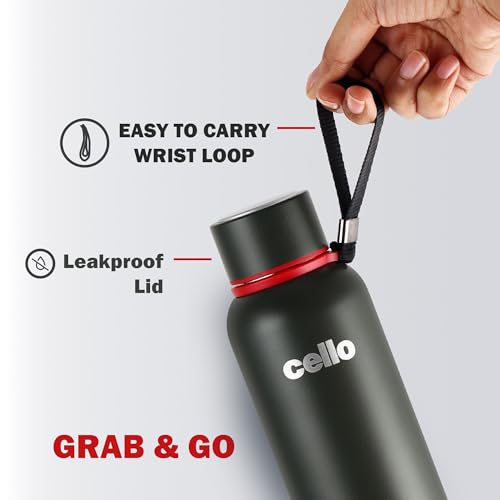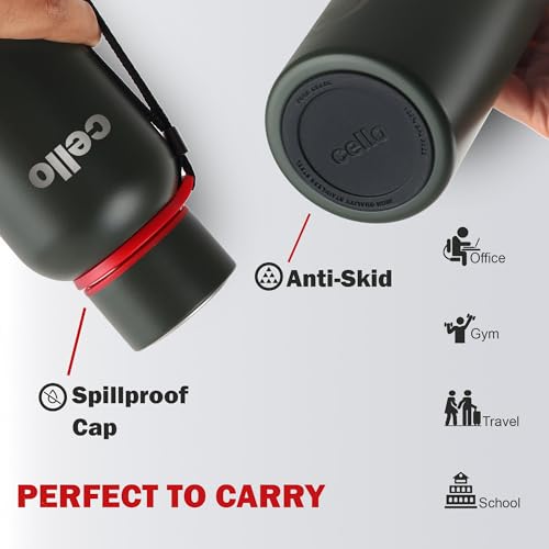 Cello Duro Kent Thermosteel Flask with DTP Coating, 550ml, Military Green | 24 Hours Hot & Cold Stainless Steel Bottle | Flask for Tea Coffee | Ideal for Office, Gym, Home, Hiking, Travel Bottle