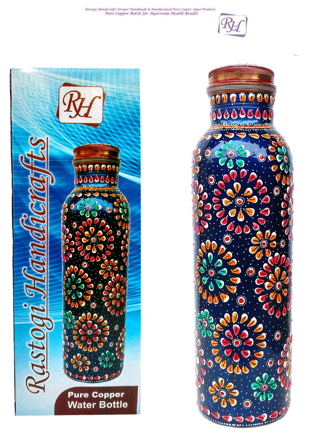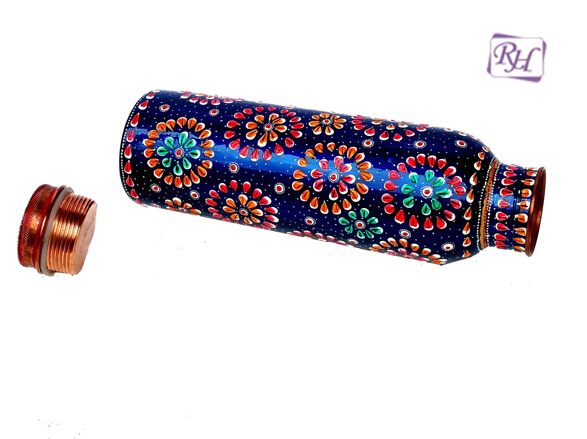Rastogi Handicrafts Copper water Bottle For Drinkware Hand Printed (SMALL RED + BLUE)
