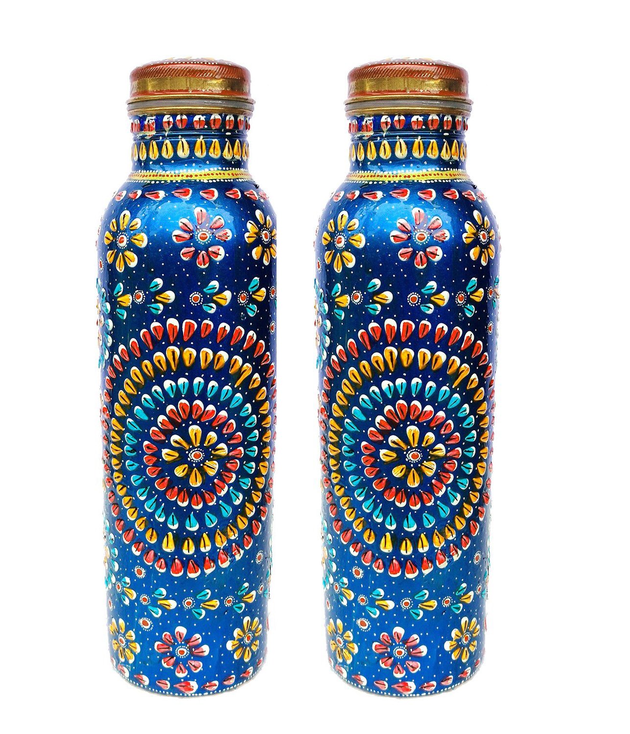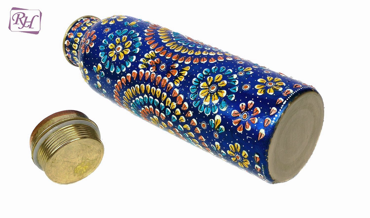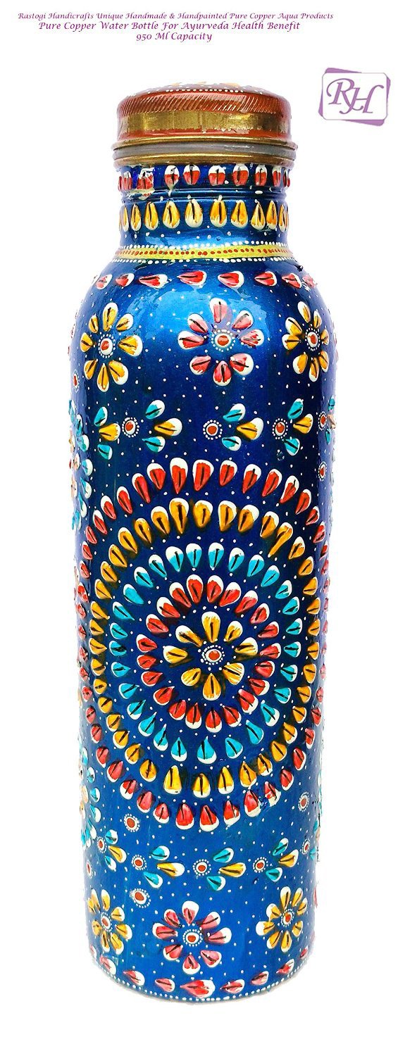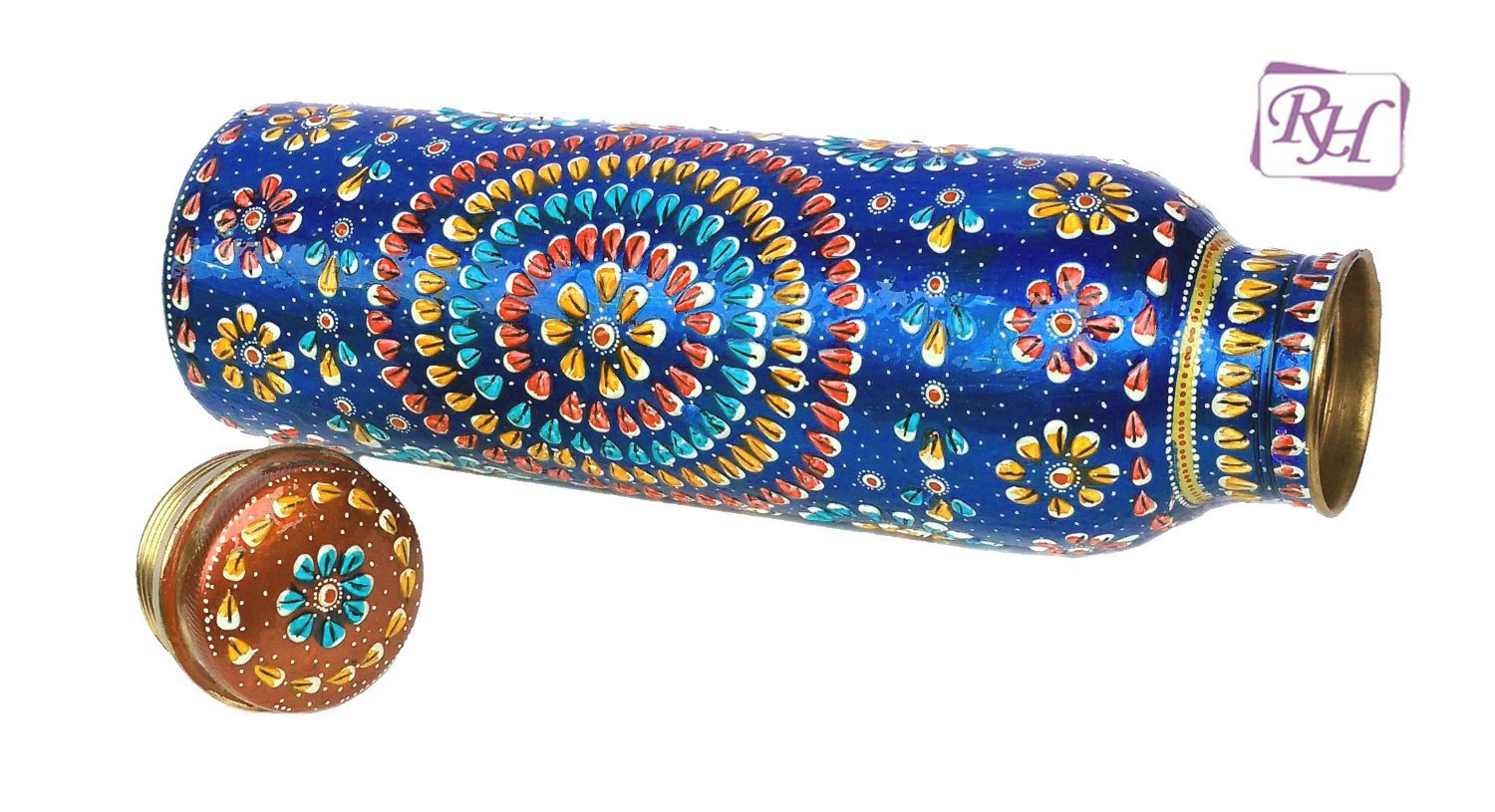 Rastogi Handicrafts New Creation Copper water Bottle for Ayurveda Heath Benefit Hand Hammered Tumbler (blue)(BIG BLUE)