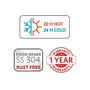 Insulation type: Double wall; Temperature retention: Yes (Keeps liquid hot/cold upto 20 Hours Hot and 24 Hrs Cold); Leak proof: No. Clean with mild detergents only