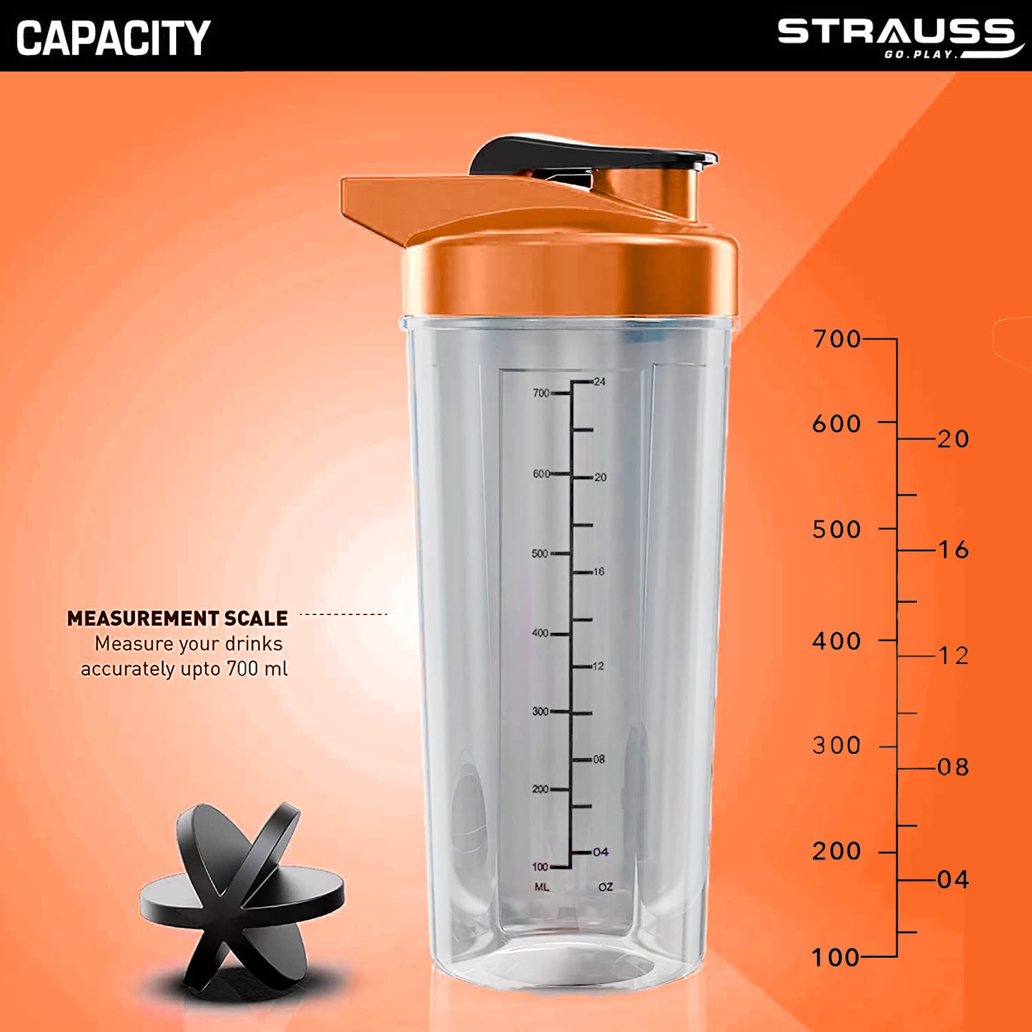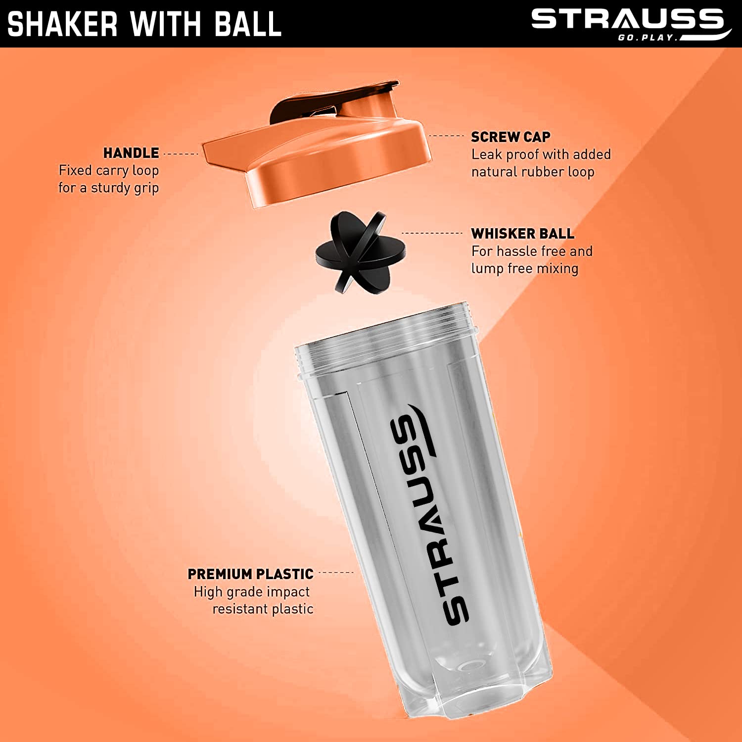 Strauss Energy Shaker Bottle White Shade (Orange)