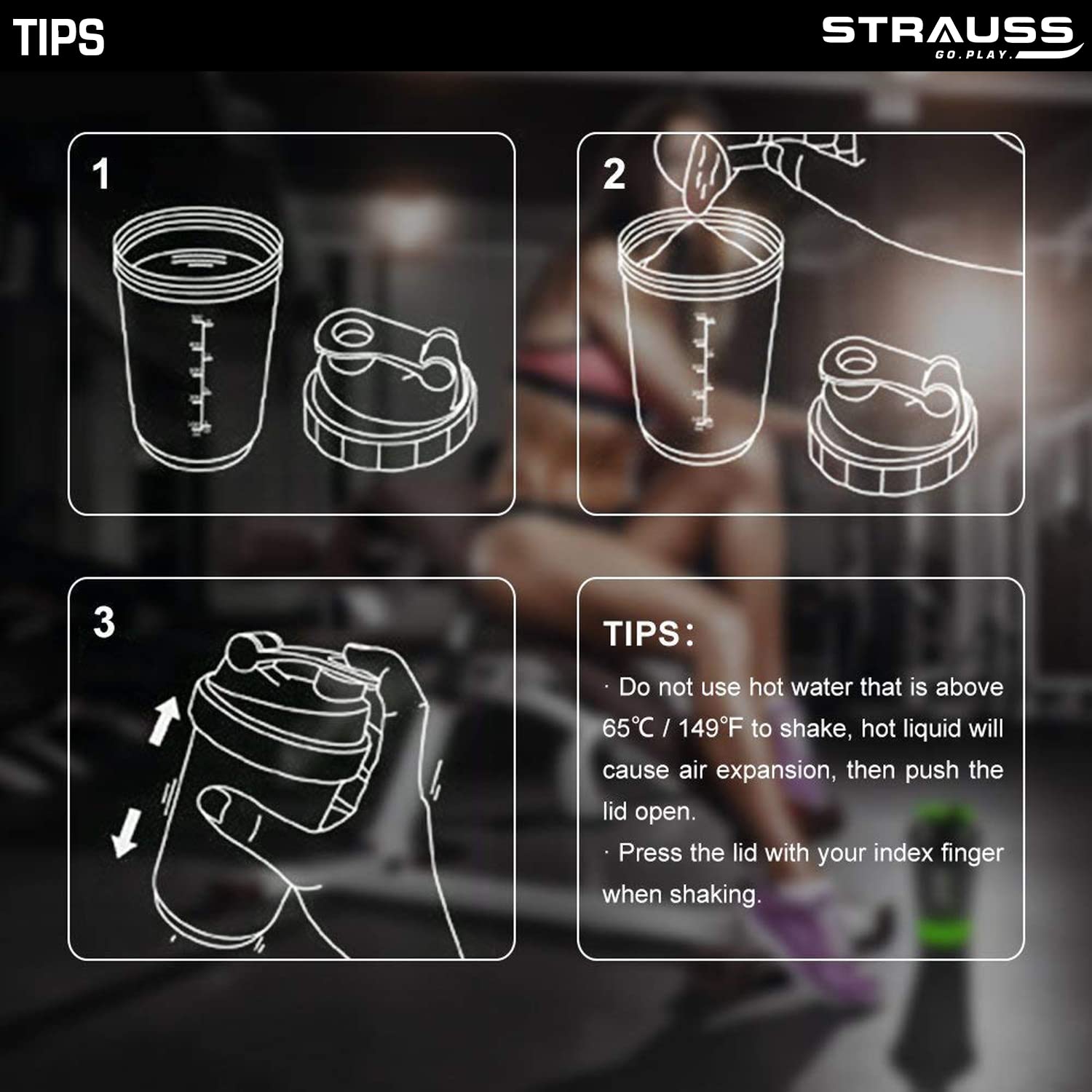 The shaker is made of safe durable and BPA- free plastic for everyday use. As it is easy to carry it can be used for hiking camping biking travelling etc