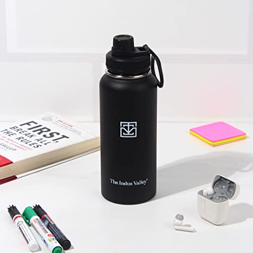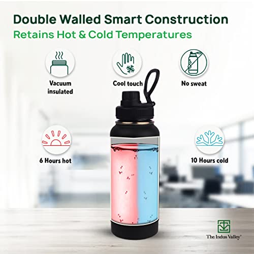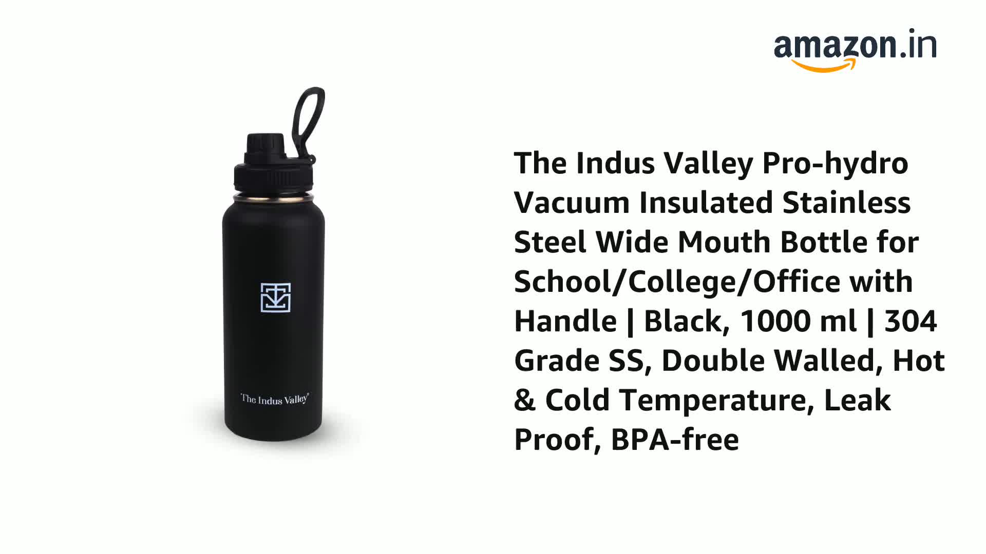 The Indus Valley Pro-hydro Vacuum Insulated Stainless Steel Wide Mouth Bottle for School/College/Office with Handle | Blue, 1000 ml | 304 Grade SS, Double Walled, Hot & Cold Temperature, Leak Proof, BPA-free