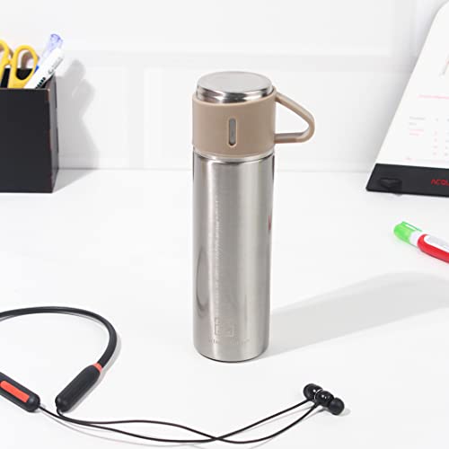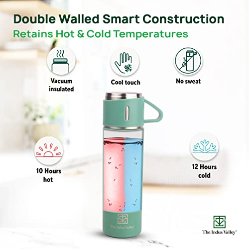 The Indus Valley Stainless Steel Vacuum Insulated Flask with Drinking Mug | Silver 500 ml | Double Walled Hot & Cold Temperature Leak Proof BPA-Free