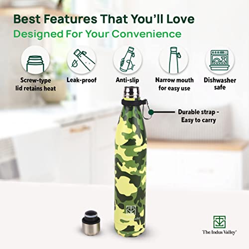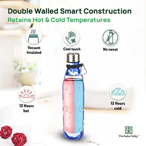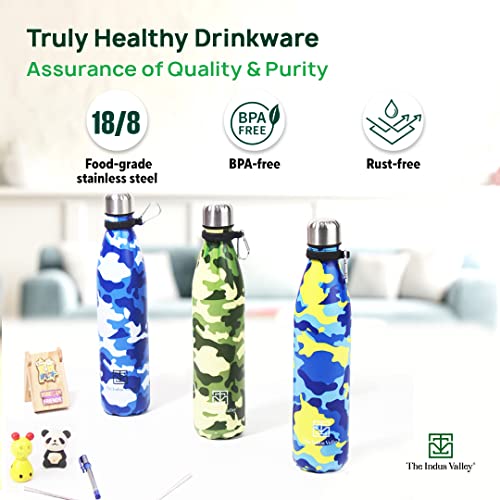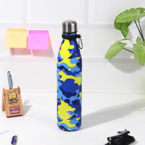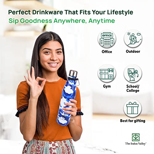 The Indus Valley Vacuum Insulated Stainless Steel Cola Bottle for School/College/Office | Yellow & Blue 1000 ml | Double Walled Hot & Cold Temperature Leak Proof BPA-Free