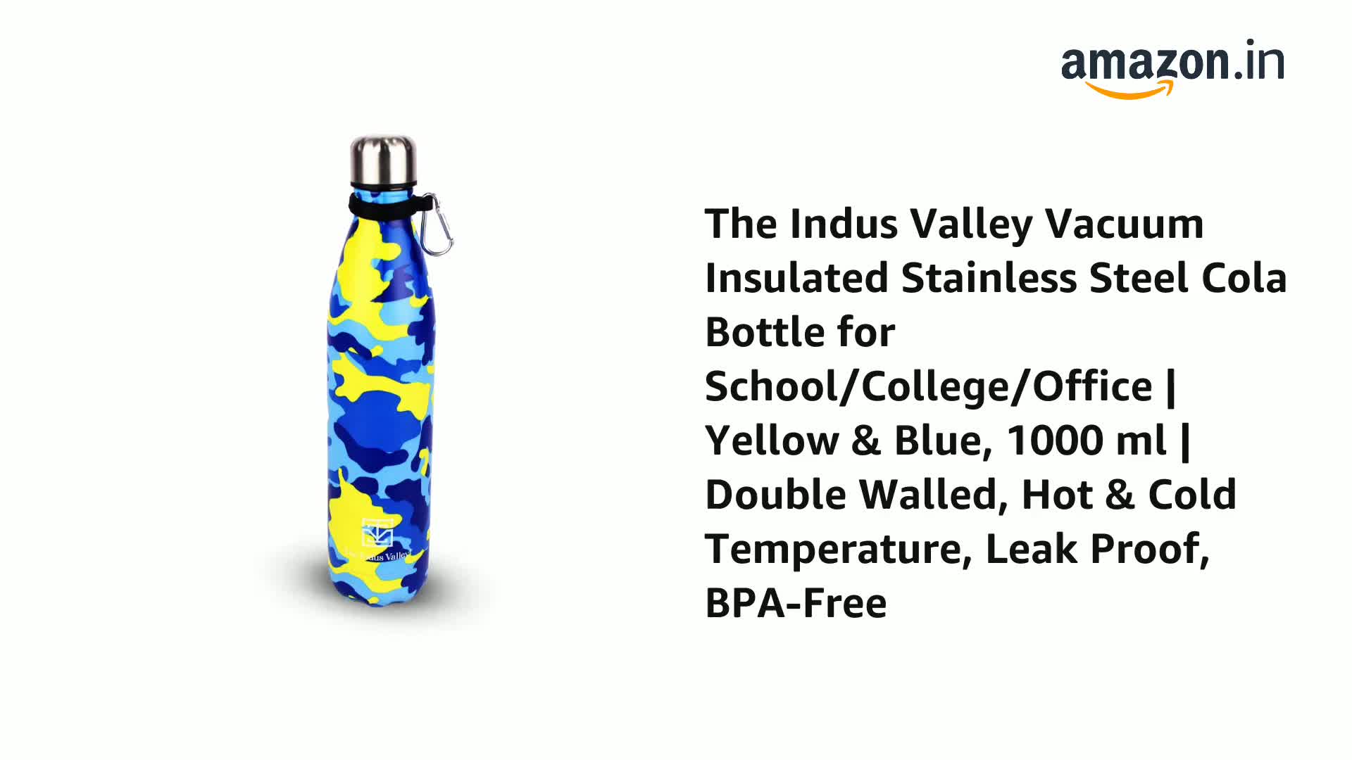 The Indus Valley Vacuum Insulated Stainless Steel Cola Bottle for School/College/Office | Yellow & Blue, 1000 ml | Double Walled, Hot & Cold Temperature, Leak Proof, BPA-Free