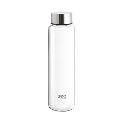 Treo by Milton Clarion Borosilicate Glass Fridge Water Bottle with Leak-Proof Airtight Stainless Steel Lid, 310 ml, Transparent for Hotel, Travel, Office, Home