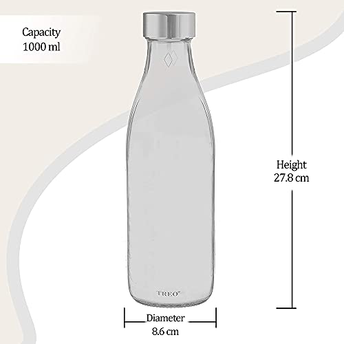 Ivory Premium Bottles are ideal for multiple usages wonderful for shakes smoothies plain water milk juices or cocktails as beverage glassware or drinkware. Perfectly for garden parties weddings baby showers picnics and beach trips. You can take them anywhere as great gifts with a real talking point. Also you can use them simply as decoration. Treo Ivory Premium 1000 ml glass bottles are made of toughened glass material which is extremely safe PBA and lead free which is known as a kind of special environmental and healthy glass material. The lids are made up of 304 high quality rust-proof material respectively for extra durability and extended service-life. Glass has almost zero rate of chemical interaction thus ensures strength Aroma and Flavour. Whether it is a kid's birthday party or grown up party - our Ivory glass bottles set the perfect tone of your party. They are reusable and perfect to use. These crafty bottles also can be used for dcor at your next lemonade stand. You can even plant your favourite herbs in them giving your indoor garden a sparkle of class. The nostalgic design embraces the "farm to table" look.