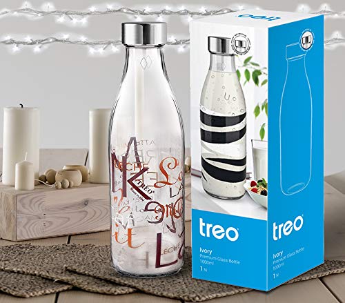 Ivory Premium Bottles are ideal for multiple usages wonderful for shakes smoothies plain water milk juices or cocktails as beverage glassware or drinkware. Perfectly for garden parties weddings baby showers picnics and beach trips. You can take them anywhere as great gifts with a real talking point. Also you can use them simply as decoration. Treo Ivory Premium 1000 ml glass bottles are made of toughened glass material which is extremely safe PBA and lead free which is known as a kind of special environmental and healthy glass material. The lids are made up of 304 high quality rust-proof material respectively for extra durability and extended service-life. Glass has almost zero rate of chemical interaction thus ensures strength Aroma and Flavour. Whether it is a kid's birthday party or grown up party - our Ivory glass bottles set the perfect tone of your party. They are reusable and perfect to use. These crafty bottles also can be used for dcor at your next lemonade stand. You can even plant your favourite herbs in them giving your indoor garden a sparkle of class. The nostalgic design embraces the "farm to table" look.