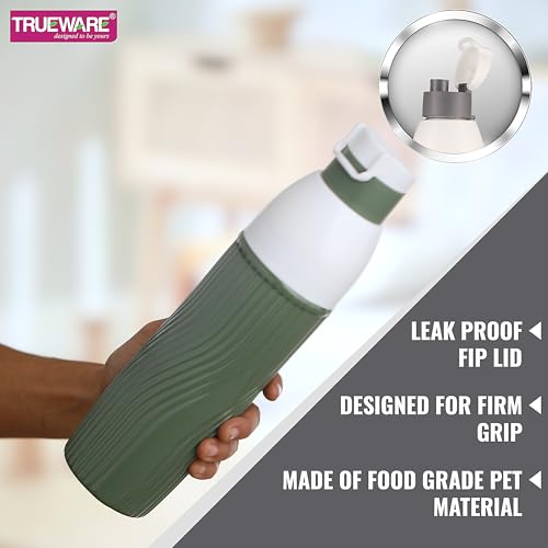 Trueware Aqua Bliss PU Insulated Plastic Water Bottle 850 ML | Pink | BPA Free | Food Grade | Office, College, Travel, Sports Bottle (Green)