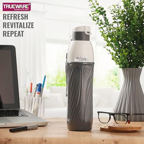 Trueware Aqua Pure PU Insulated Plastic Water Bottle 850 ML | BPA Free | Food Grade | Office, College, Travel, Sports Bottle | Easy to Carry | Easy Grip | Odorless (Brown)