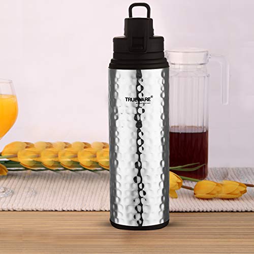 • Trueware Fusion Plus Insulated Copper bottle is designed to keep water for long hours. Fusion Plus Double wall polyurethane insulated copper body inside and outside durable hammered lacquer coated Stainless steel make it an elegant bottle.