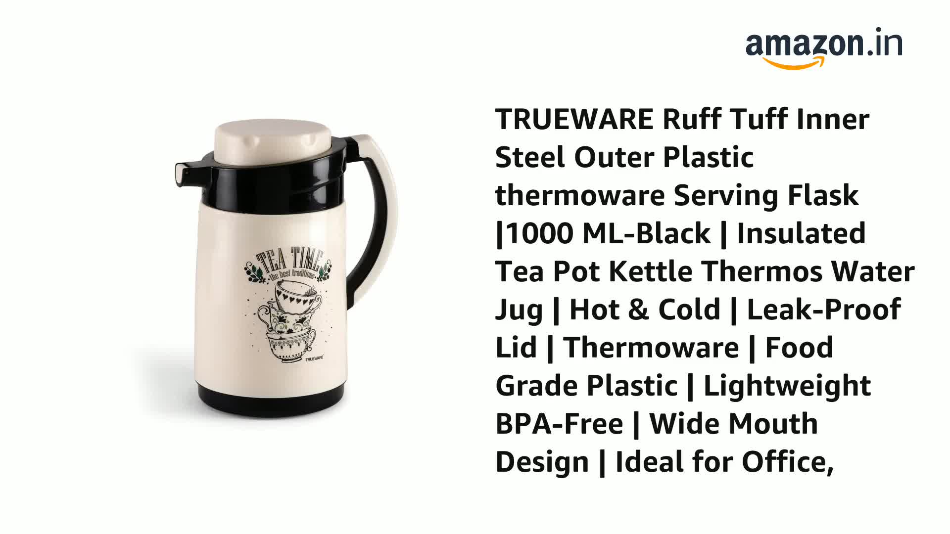 • Contemporary dual-tone finish and body-graphics wide-mouthed for easy filling and cleaning. It is BPA free Leak proof odour proof and light weight. Fill the Jug upto the brim. This ensures maximum heat retention. Pre-condition Jug with hot water if using