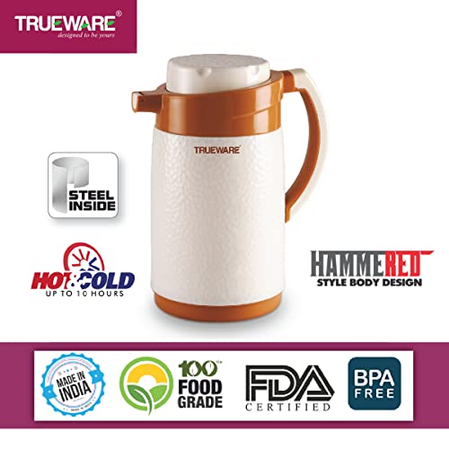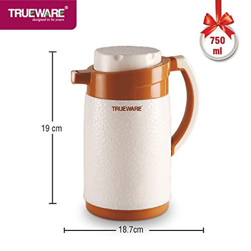 Trueware Sophia Insulated Flask - 750 Ml | Insulated Tea Pot Kettle Thermos Water Jug | Hot & Cold | Leak-Proof Lid | Thermoware | Food Grade Plastic | Lightweight BPA-Free | Wide Mouth Design | Ideal for Office, Travel | Orange