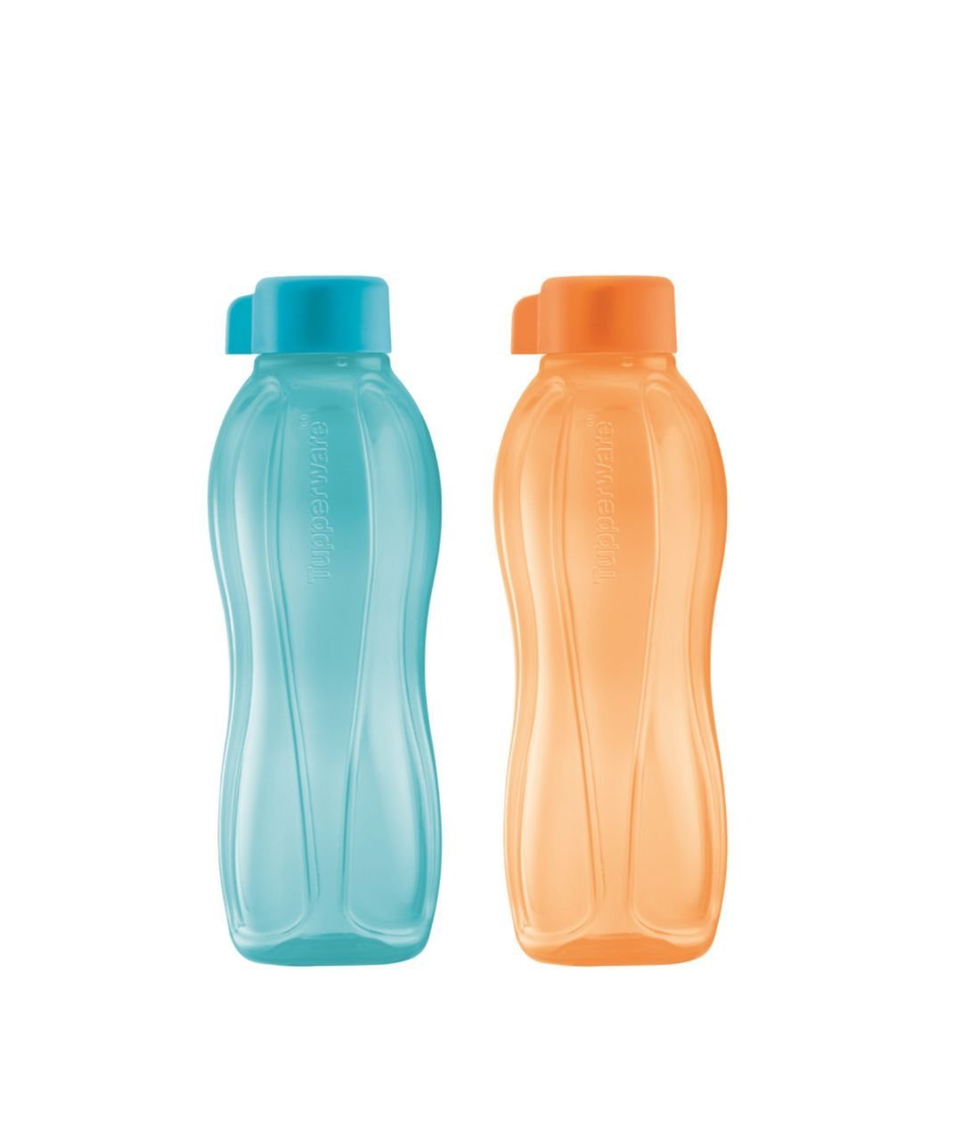 Tupperware Small Sports Eco Water Bottle 500ml Set of 2 (Blue & Orange Plastic)