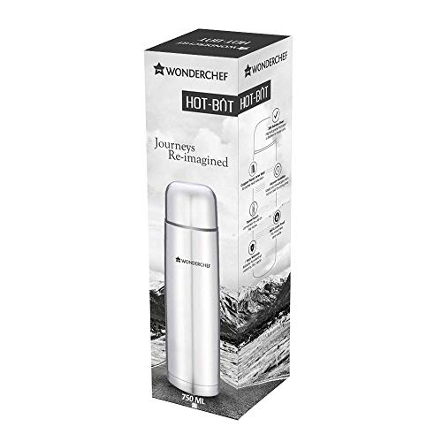 Wonderchef 750ml Double Wall Stainless Steel Vacuum Insulated Hot and Cold Flask with Travel Pouch, Copper Plated Inner Wall, Spill & Leak Proof, 2 Years Warranty
