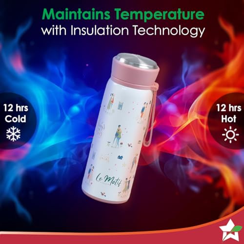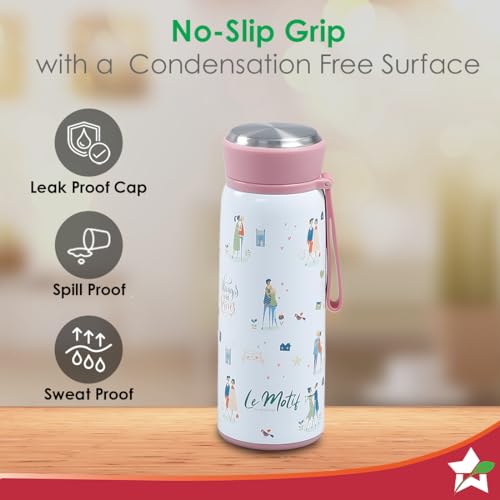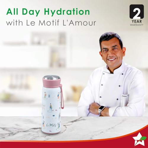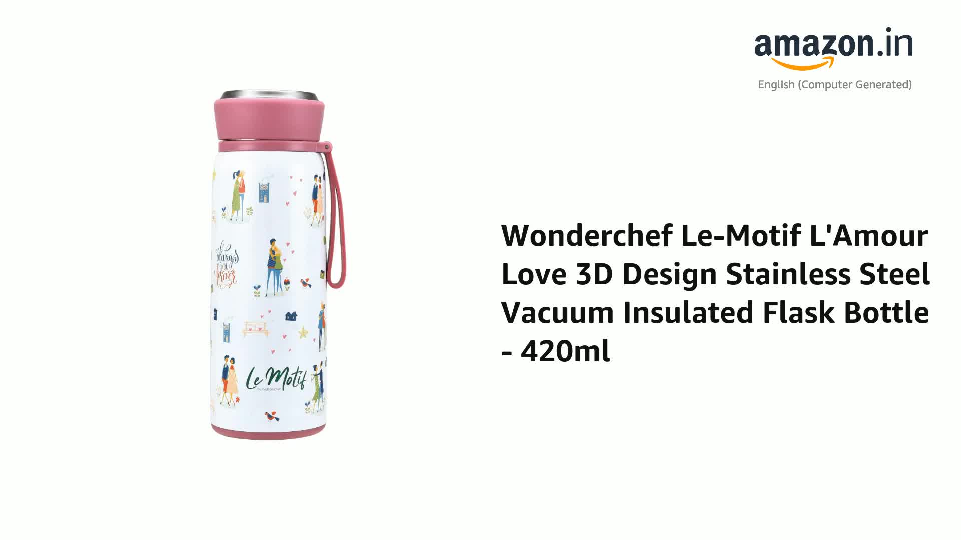 Wonderchef Le Motif L'Amour, 420ml, Stainless Steel Double Wall Water Bottle, 3D Embossed Design, Spill & Leak Proof, 2 Years Warranty