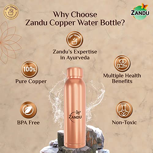 Zandu Copper Bottle (950ml): 100% Pure BPA-Free Water Bottle | Copper-Infused Water | Leak Proof | Office Use | Boosts Immunity | Supports Digestive & Liver Health | Ayurveda Inspired