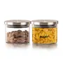 AGARO Elite Borosilicate Glass Jar 350 ml Round Shaped Steel Lid Microwave Oven & Freezer Safe Storage Glass Container Transparent Kitchen Organiser Multipurpose Jar Pack of 2.