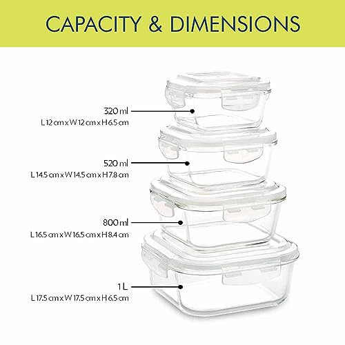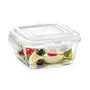 Borosil Klip N Store Glass Storage Container For Kitchen With Air-Tight Lid, Microwave & Oven Safe, Square, 1 L, Clear