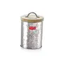 HAZEL Stainless Steel Hammered Finish Storage Jar Container With Wood Lid 1400 ML Silver