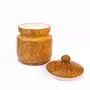 KHURJA POTTERY Pickle Jar Storage Burni Masala Container Aachar Chutney Serving Barni Canister Ceramic Handpainted Jar (Yellow - Black 1250ml) Dishwasher Safe