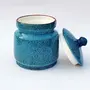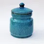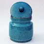 KHURJA POTTERY Pickle jar Storage Burni Masala Container Aachar Chutney Serving Marmalade Barni Canister Ceramic Handpainted Jar (Blue - Black 1250ml) Dishwasher Safe