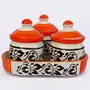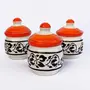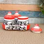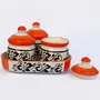 Made in India for an initiative of Aatam Nirbhar Bharat A Product with simple handle and detailed with Handpainted Glaze. Handmade and hand glazed with love from the interiors of India. They make the perfect addition to any kitchen and table spaces as art pieces displaying an exemplary glimpse of studio pottery from India. Those who love their food love their kitchen will definitely love this modern product. Best for serving casually or occasionally at one on Breakfast Lunch & Dinner time. Tip to bottom is 100% handmade with fine details. An ideal gift for housewarming party. Comes in a set of 3 Jars & 1 Tray. The product is lead free. The product is dishwasher & microwave safe.