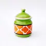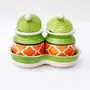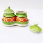 KHURJA POTTERY Pickle Jar Storage Masala Container Aachar Chutney Serving Canister Condiment Set with Tray for Dining Table (Set of 2 Green & Orange) Microwave and Dishwasher Safe