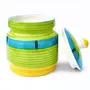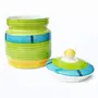 KHURJA POTTERY Pickle Storage Burni Masala Container Aachar Chutney Serving Marmalade Barni Canister Ceramic Handpainted Jar (Blue - Green - Yellow 1250ml) Dishwasher Safe