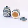 KHURJA POTTERY Pickle Storage Burni Masala Container Aachar Chutney Serving Marmalade Barni Canister Ceramic Jar Set for Dining (Grey 750ml each) Microwave and Dishwasher Safe