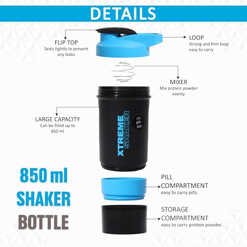 Jaypee Plus Xtreme Shaker Gym Shaker for Protein Shake Shaker Bottles for Protein, Preworkout Shaker BCAA Shake, Protein Shaker Bottle for Gym Men and Women BPA-Free 700 ml Black Blue