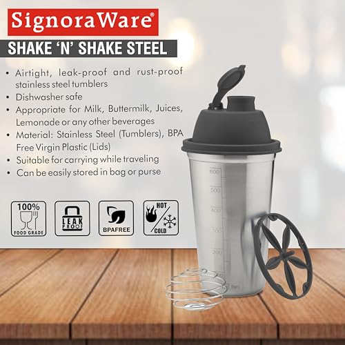 Style:Sport Shaker+Whisk (Ste 1)|Color Name:BlackSignoraware is an ISO certified company that gives the assurance of 100 percent food grade crockery air and spill-proof containers innovative user-friendly design international quality packaging and highly competitive prices to its customers. Signoraware is one of the Lding plastware companies in India with quality par excellence when compared to any other international plastware brand. With its well-equipped randd department team of technical experts and warehouse capacity of over 150000 sq. Ft. Signoraware is committed to setting new benchmarks of superior products for its valued customers. The kitchen is the hert of your home. Make it livelier with the all-new range of signora ware products. Our widest range of products include lunch and outdoor thirst quencher smart series magic sprinklers easy flow modular kitchen containers mini wonders cooking range microwave reheating and serving and serving tableware. Inspired by you our products are just as smart versatile and reliable. In short they are your joyful companions that care for you and your family. Available in attractive designs they are non- toxic and their colours never bleed and get mixed to your food. Whats more its superior range of air-tight spill-proof and moisture-free storage containers keep your food fresh and tasty for longer.