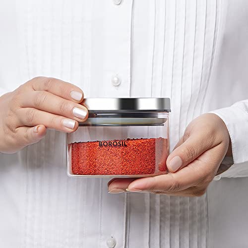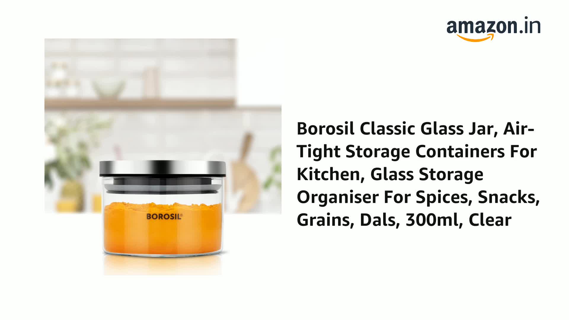 100% BOROSILICATE - Clear as day- that's how the contents of this Borosil glass jar for the kitchen will appear to you. Handy isn't it! The borosilicate glass is tougher than ordinary glass. This kitchen organiser item is exactly what your kitchen shelf n