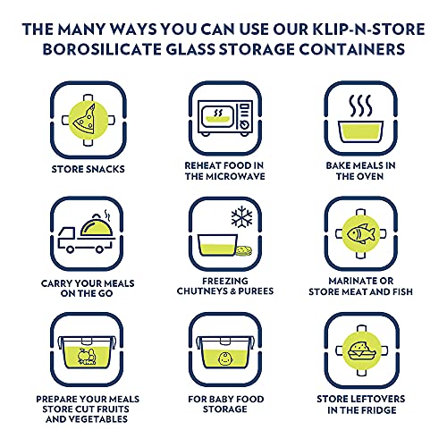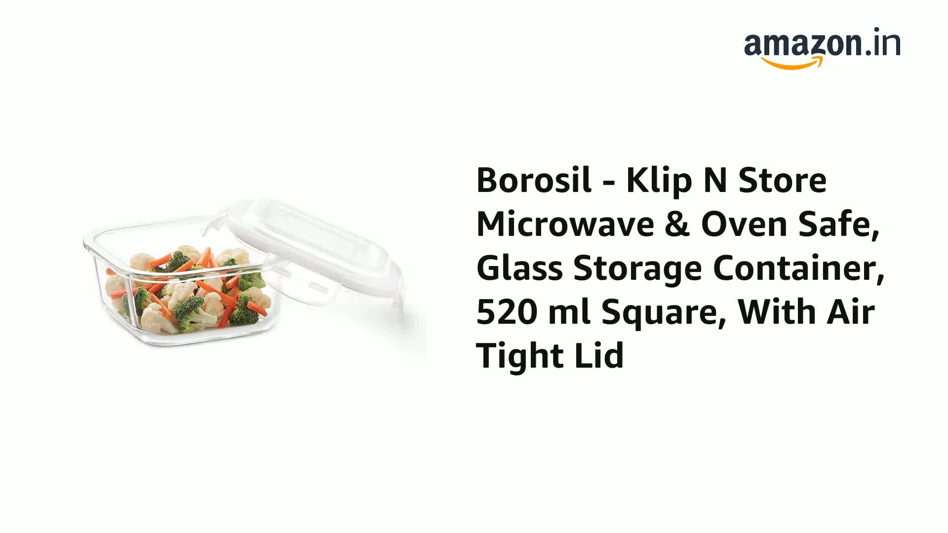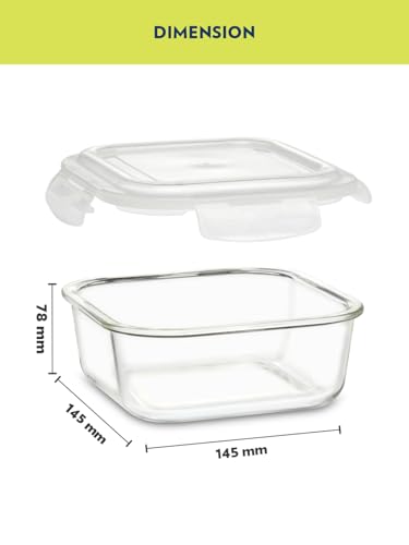 HomeKitchenContainersJars & ContainersBorosil Klip N Store Glass Storage Container For Kitchen With Air-Tight Lid, Microwave & Oven Safe, Square, 520 ml, Clear
