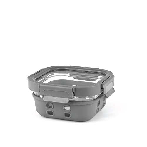 HomeKitchenContainersJars & ContainersBorosil Klip N Store Plus 520 ml Square Glass Food Storage Container with Air Tight Glass Lid | Borosilicate Glass Container for Lunchbox | Microwave & Dishwasher Safe | Transparent