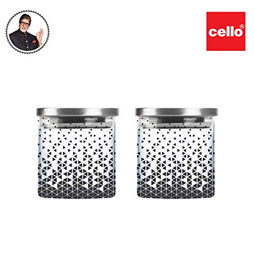 Cello Borosilicate Glass Jar with Steel Lid - D'ziner Steelox Triangle 500 ml (Set of 2)