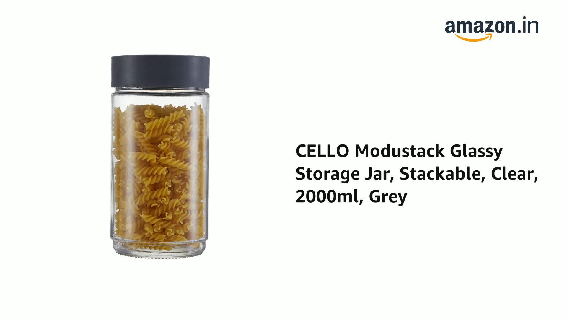 Cello Modustack Glassy Storage Jar 2000ml Grey Extra Large (CLO_GLS_MDUSTCK_2L_Gry)