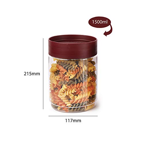 CELLO Modustack Stackable Container Set | PET Plastic Jar with Air Tight Lid | For Storage of Food, Pulses, Spice, Cereals, Cookies, Dry Food | 1500ml | Set of 6, Maroon