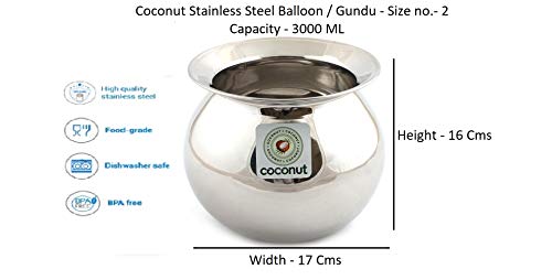 • Product Content : Stainless Steel Balloon / Gundu / Pongal Pot Size No. 2 1 Unit