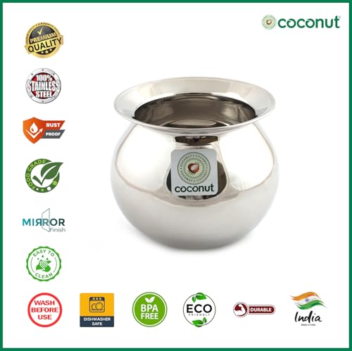 Coconut Stainless Steel Balloon/Gundu/Pongal Pot/Multipurpose Pot - 1 Unit - Diameter -17 Cms (Capacity -3000ML)